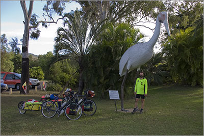 After lunch the road surface got smoother and we found ourselves stopping at another bus shelter about 20 km south of Townsville and then another stop at the Visitor Centre 10 km south of Townsville. The sign outside proudly said, “Welcome to the Capital of North Queensland” and when we turned into the drive we hit the roughest and most potholed piece of bitumen road we have come across! We later found out the condition of the road was due to floods earlier this year.