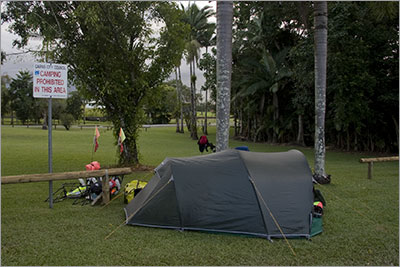 We arrived at the Babinda rest area about 3.30pm. After helping to put up the tent fly Denise headed of to the shops to look for dinner whilst I finished setting up camp.