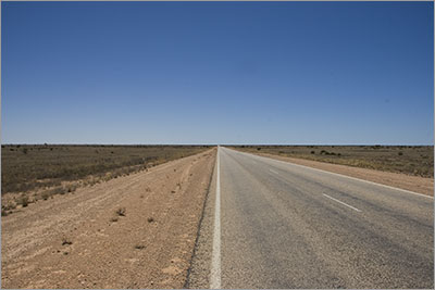 In the warmth of the day the heat haze merges the road with the sky and the road seems to go on forever. Normally there is a bend in the road or a crest of a hill that helps us gauge our progress but here the road is mostly flat with only small climbs of 5 metres or less that add to the illusion that the road blends with the sky. Oncoming traffic slowly materialises out of the haze and can then take up to 10 minutes to reach us.